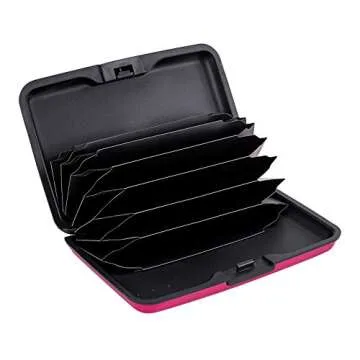 ELFISH Mini RFID Aluminum Wallet Credit Cards Holder Business Card Case Metal ID Case for Men Women (Pink)