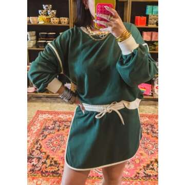 ELFTOWN Women's Casual Fall Sweatshirts Short Skorts Set 2 Piece Outfit Tracksuits Skirt Top Matching Set (Small, Green)