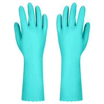 Elgood Reusable Dishwashing Cleaning Gloves with Latex free, Cotton lining,Kitchen Gloves 2 Pairs,Purple+blue large