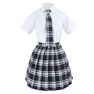 Show moreIntroducing an adorable 6-piece schoolgirl outfit set that promises to turn heads while providing comfort and style! This fabulous ensemble is crafted from a blend of terylene and cotton, ensuring a soft and durable finish that cares for your skin. The package includes everything you need, featuring a classic crisp white shirt, a pleated plaid mini skirt, a stylish bow tie, a traditional necktie, over-the-knee socks, and playful eyeglass frames – a perfect mix for any occasion!