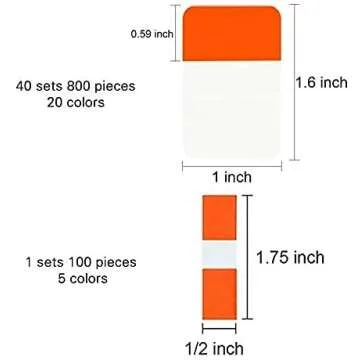 Show more Get organized with the ELII 900 Pieces Tabs Sticky Index Tabs! This comprehensive set is perfect for students, professionals, and anyone who needs a reliable way to categorize and highlight important information. With a total of 900 pieces spread across 41 sets, these tabs come in vibrant neon colors that make it easy to differentiate between various information. The set features 800 pieces of 1-inch adhesive index tabs in 40 sets with 20 different colors, and 100 pieces of 0.5-inch tabs in 1 set, providing ample supply for all your organization needs. The colors are bold and bright, ensuring that you can easily spot what you’re looking for at a glance.