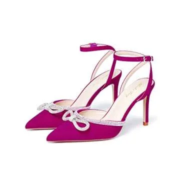 Elisabet Tang Women's High Heel Pumps,Rhinestone Strip Bowknot Ankle Buckle Straps Heels Stiletto Sandals Suede Pointed Closed Toe Strappy Heels Pumps Wedding Dress Shoes Hot Pink Size 9