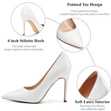 Elisabet Tang Women's High Heels Pumps Closed Pointed Toe Stiletto 4inch Heels Classic Office Special Dressy Wedding Pump Shoes White 11