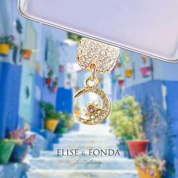 ELISE & FONDA TP218 Type-C Charging Port Crystal Anti Dust Plug Tiny Moon and Star Cell Phone Charm for Samsung Galaxy/OnePlus/Xiaomi/oppo Android Phone iPhone 15/16 (Gold)