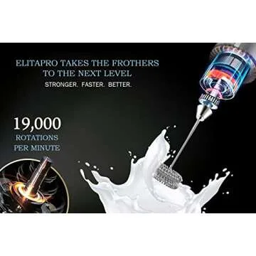 Show more Introducing the ELITAPRO ULTRA-HIGH SPEED Milk Frother, a game-changing kitchen tool designed for coffee enthusiasts and culinary creatives alike! This premium frother isn’t just about frothing milk—its powerful 19,000 RPM motor delivers a whirlwind of versatility that allows you to whip up everything from rich lattes and frothy cappuccinos to fluffy scrambled eggs and decadent hot chocolate in no time. Say goodbye to expensive coffee shop visits and showcase your barista skills right at home!