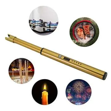 Elite Brands USA Plasma Arc Trendy Long Neck Rechargeable Windproof USB Lighter, Ideal for Gas Stove Candle Fireplace Kitchen Grills BBQ, Flameless Without Butane, Electric Beam Lighter (Gold)
