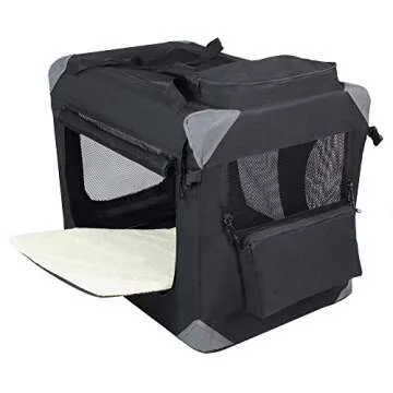 EliteField 3-Door Folding Soft Dog Crate with Carrying Bag and Fleece Bed (2 Year Warranty), Indoor & Outdoor Pet Home (42" L x 28" W x 32" H, Black)