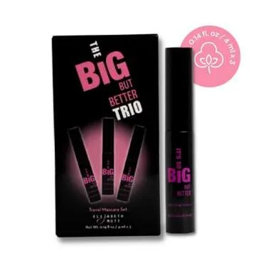 Elizabeth Mott Black Volumizing Mascara Set – Smudge-Proof, Water-Resistant, Lengthening Fiber Formula with Hourglass Wand – Cruelty-Free, Safe for Lash Extensions – Travel-Size Mini Trio, 4ml Each