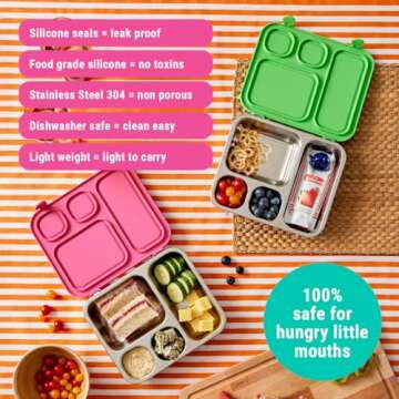 Show moreIntroducing the Elk and Friends Kids Stainless Steel Bento Box, a remarkable lunch container designed specifically for little ones and peace of mind for parents! This thoughtfully engineered bento box not only offers your toddler an enjoyable way to pack their favorite meals and snacks but also promotes healthier eating habits. With its vibrant colors and playful design, this lunch box is made from top-quality Stainless Steel 304 and Food Grade Silicone, ensuring it is both durable and safe for daily use. Plus, its four spacious compartments allow for a variety of delicious kid-friendly options, making mealtime fun and exciting every day!