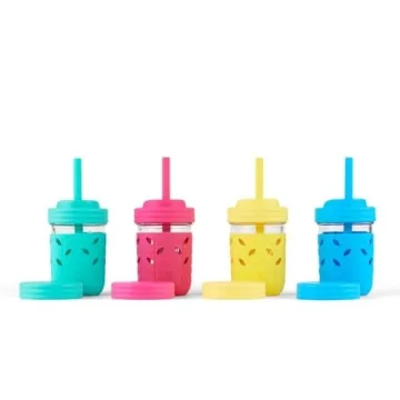 - Durable 8oz glass mason jars with colorful silicone sleeves.