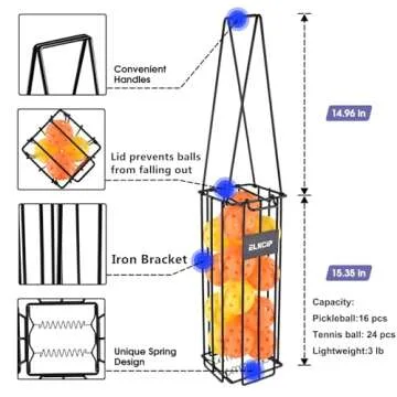 This robust tool is perfect for players of all skill levels. Its large capacity can hold up to 24 tennis balls or 16 pickleballs, ensuring that your supply is plentiful. Whether you're a parent, teacher, or player, this ball retriever keeps your court organized and your practice seamless.