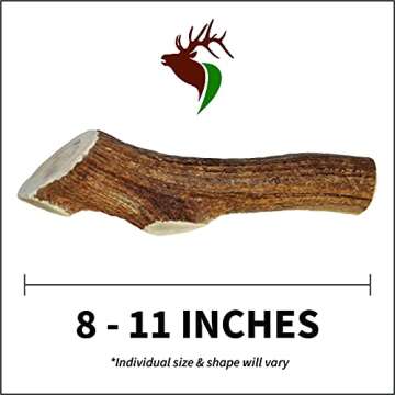 The Elk Antler is perfect for power chewers, with a *size range* of 8-11 inches in length and a diameter of 1.5-2.5 inches. With its whole (un-split) design, it locks in the *natural flavors* and nutrients of the antler, promoting dental health as your dog chews away. You’ll also love the fact that it leaves no messy stains or odors – making for a cleaner playtime experience.