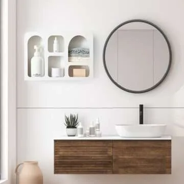 Show more Introducing the **Ella & Emma White Decorative Floating Wall Shelf** — an exquisite blend of functionality and style! Elevate your home decor with this geometric arched wall shelf that seamlessly complements both bohemian and modern interiors. Crafted from premium wood, this shelf not only enhances your living spaces with its **clean, classy look** but also ensures **secure display** of your cherished items, such as stones, plants, essential oils, or collectible figures, thanks to its special front lip design. With dimensions of **3.66"D x 16.33"W x 11.41"H**, it provides ample space for various decor items while fitting effortlessly into any room style. Whether you’re going for a contemporary vibe or a cozy boho aesthetic, this floating shelf is your perfect match. Less