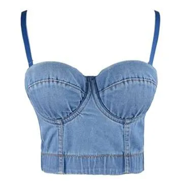 ELLACCI Women's Denim Bustier Crop Top Jean Corset Top with Detachable Straps
