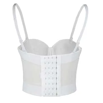 ELLACCI Women's Diamond Chain Mesh Bustier Crop Top Push Up Corset Top Bralet White Medium