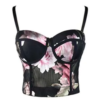 Stunning Floral Foil Print Mesh Bustier Crop Top for Every Occasion