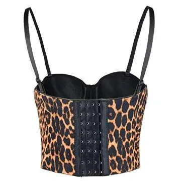 ELLACCI Women's Leopard Print Bustier Crop Tops Sexy Sleeveless Brown Women Corset Top Large