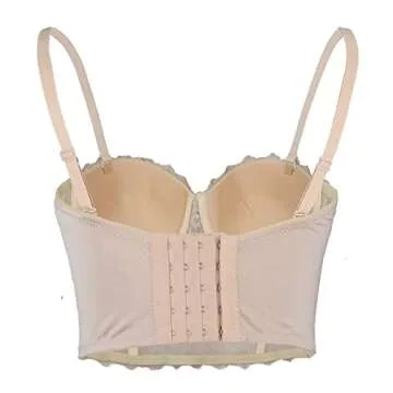 ELLACCI Women's Natural Reigning Lace Rhinestone Bustier Crop Top Sexy Mesh Corset Top Bra Large