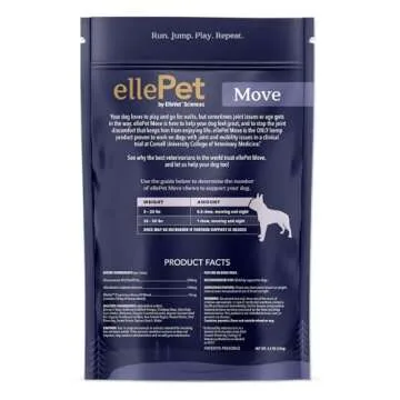 Show moreDiscover the transformative power of ellePet Move Hemp Mobility Chews, specially designed for small dogs weighing under 50 lbs. These delicious chews are not just a treat; they are a comprehensive solution for your pup’s joint discomfort and mobility issues. Infused with a proprietary blend of high-quality hemp oil, glucosamine, and chondroitin, elleMove effectively aids in maintaining healthy joint function and relieving stiffness. Imagine your furry friend trotting around with renewed vigor, enjoying every moment spent outdoors. With over 80% of dogs showing significant improvement in mobility and overall happiness after using elleMove, it’s clear that these chews are more than just an average supplement—they're a key to unlocking your dog's full potential for an active, joyful life. Made with love and care in the USA, each batch is GMP-certified, ensuring that your beloved pet receives nothing but the best.