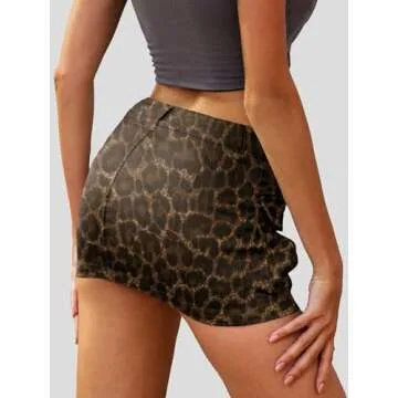 ELLEVEN Mini Cargo Skirts for Women High Stretchy, Low Waist Y2k Skirt Button Cute Denim Bodycon Jean Skirt with Pocket Leopard Print X-Large