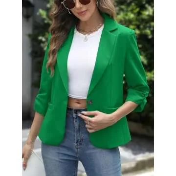ELLEVEN Womens Blazer Business Casual Suit Jacket Slim Fit Fitted Ruched 3/4 Sleeve Petite Crop Blazer Dressy Full Lining Lightweight Outfits Coat Cardigan with Padded Shoulder Green Small