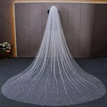EllieWely Long Cathedral Length Pearl Wedding Bridal Veil With Metal Comb F07 3 M White
