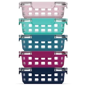 Additionally, the containers are oven and microwave safe without the lid, allowing you to reheat your meals easily. For those who prioritize style alongside functionality, the removable extra-thick silicone protection sleeves come in a variety of vibrant colors, adding flair to your kitchen while safeguarding against chips and breaks.