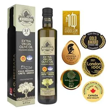 Show more Discover the rich and vibrant flavors of Ellora Farms Olive Oil, a 100% Pure Greek Extra Virgin Ultra-Premium Olive Oil that embodies the essence of the Mediterranean lifestyle. Harvested from the pristine groves in the Messara region of Crete, Greece, this exceptional oil is celebrated for its intense fruity aroma and a unique peppery finish that elevates every dish. Each bottle is meticulously numbered, ensuring that you receive the highest quality product that has been certified by the European Union for both origin and quality.