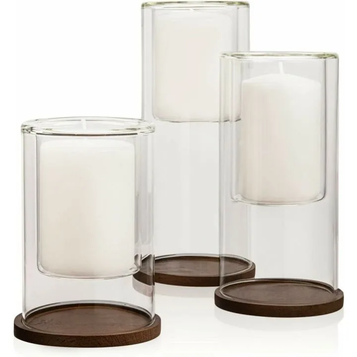 \n\nWhat sets these candle holders apart are their unique features, such as the blend of crystal clear glass and handmade wooden coasters, high-quality borosilicate glass with heat-resistant walls, and versatility for both indoor and outdoor use. These features ensure not only durability but also a touch of luxury that enhances any setting.