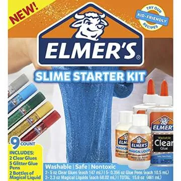 Elmer’s Slime Starter Kit, Clear School Glue, Glitter Glue Pens & Magical Liquid Activator Solution, 9 Count
