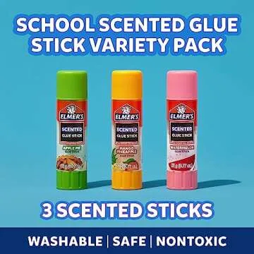 Show more Introducing the **Elmer's Total 9-Sticks**, a delightful set of scented glue sticks designed for kids and perfect for school projects! This variety pack features three exciting scents—**Apple Pie**, **Mango Pineapple**, and **Watermelon**—that make crafting not only fun but also aromatic. Each stick is **0.77 oz**, providing the ideal size for little hands to use. Made with non-toxic materials, these glue sticks ensure safety for children, allowing them to express their creativity without worry. The smooth application glides effortlessly onto paper, cardboard, and more, while the vibrant scents add a sensory twist to every project.