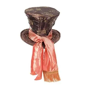 elope Disney Mad Hatter Top Hat - Adjustable Hat with Peacock Feather and Satin Scarf, Officially Licensed - Brown