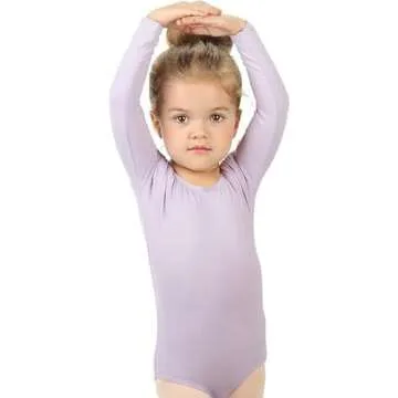 Introducing the **Elowel Girls' Team Basics Long Sleeve Leotard** in stunning lavender, designed seamlessly for young dancers and gymnasts aged 2-4. Crafted from a perfect blend of **90% Nylon and 10% Spandex**, this leotard offers exceptional **comfort and breathability**, ensuring your child can move freely while staying stylish. Its high elasticity allows for a snug yet comfortable fit, and as confirmed by our customers, it has quickly become a favorite for dance classes and costume parties alike.