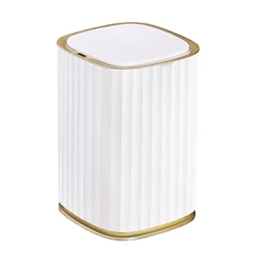 Show moreIntroducing the innovative ELPHECO 3.5 Gallon Bathroom Trash Can, your perfect blend of modern design and advanced functionality! With its elegant white finish that showcases a luxurious golden trim, this motion sensor trash can is designed not only to enhance your decor but also to make waste management an effortless task. Measuring 9.1''L × 9.1''W × 13''H, it fits seamlessly in any corner of your home or office, combining style with practicality.