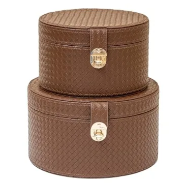 Show moreDiscover the perfect blend of functionality and style with the ELPMD Large Leather Decorative Boxes Set. These round hat boxes are not just storage solutions but a statement piece for any room. Crafted with soft, three-dimensional woven leather, they offer a stylish and decorative touch to your home. The sturdy pulp mold pressure injection molding ensures durability, while the interior flannelette lining protects your valuables. The unique circular design softens the space, and the anti-rust hardware buckle adds a high-end feel. Whether it's for storing hats, cards, remote controls, or other small items, these boxes are versatile enough to meet all your needs. Plus, with our 30-day return policy, your satisfaction is guaranteed.