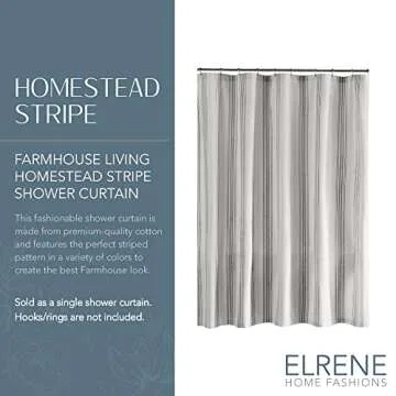 Show moreAdd a touch of country-chic sophistication to your bathroom with this elegant farmhouse shower curtain. This lovely fabric shower curtain not only enhances the aesthetic appeal of your space but also brings a warm and inviting atmosphere. Made from durable and soft 100% cotton, it features a beautiful, soft texture that adds charm to any decor. The striped design provides a timeless appeal while being trendy, making it a fantastic choice for modern and rustic themes alike.