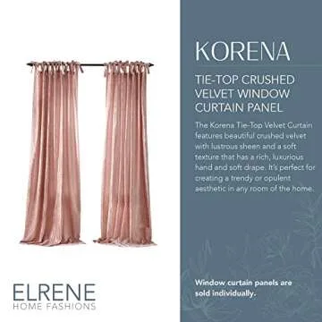 Show more Transform your living spaces into a serene sanctuary with our exquisite Korena Room Darkening Curtains. Designed by Elrene Home Fashions and crafted from luxurious crushed velvet, these curtains provide not only aesthetic appeal but also the practical benefits of room darkening. Experience an immediate ambiance upgrade as the lush velvet fabric effectively blocks out natural light, ensuring privacy and comfort when you need it most. Perfectly suited for bedrooms, living rooms, nurseries, and home offices, these elegant drapes adapt beautifully to any decor style.