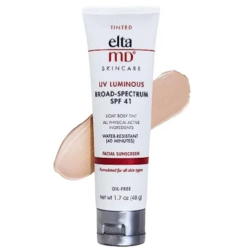 Show more Introducing the EltaMD UV Luminous Tinted Face Sunscreen and Primer, a revolutionary skincare gem designed for those who desire protection coupled with flawless skin presentation. This SPF 41 tinted mineral sunscreen, elegantly packaged in a 1.7 oz tube, offers a beautiful rosy tint that seamlessly integrates with fair skin tones. Say goodbye to imperfections as this delightful formulation not only shields your skin from harmful UVA/UVB rays but also prepares your complexion for a smoother makeup application. The result is a semi-matte, silky smooth finish that empowers you to shine without fear of sun damage.