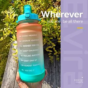 Show moreIntroducing the Elvira Half Gallon Motivational Time Marker Water Bottle, the perfect companion for anyone looking to boost their hydration game. With a generous capacity of 64 ounces, this water bottle is designed to cater to your daily water intake needs, matching your lifestyle whether you're at the gym, running errands, or enjoying outdoor activities. Featuring an inspirational quote and a built-in time marker, it not only keeps you informed about your hydration progress but also motivates you to keep sipping throughout the day. The unique flip top lid, secured with a lock to prevent leaks and dust, adds to its functional design, making this bottle a must-have for your fitness journey!