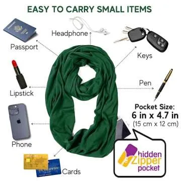 elzama Infinity Loop Solid Color Scarf With Hidden Zipper Pocket For Women, Travel Neck Wrap