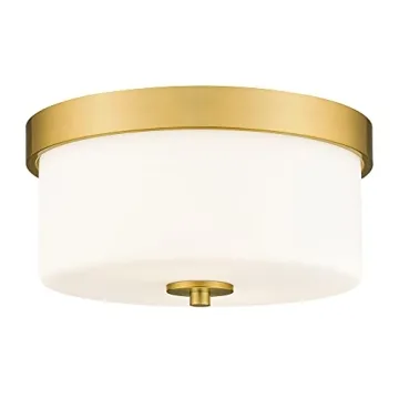 Show more Enhance your home's aesthetic with the Emak 11 Inch Brushed Gold Flush Mount Ceiling Light Fixture, a pinnacle of style and functionality. This exquisite light fixture combines a robust metal frame with elegant frosted milk glass shades, creating a stunning visual that will transform any room. Measuring 10.63 inches in length and width and standing at just 5.51 inches tall, it's designed to fit perfectly in a variety of spaces, from hallways to dining areas, making it the ideal choice for illuminating your living space.
