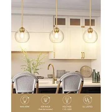 Emak Modern Gold Pendant Light Fixtures, 7 Inch Globe Pendant Lights with Clear Glass, 1 Light Hanging Lights for for Kitchen Island, Bathroom, Dining Room, Bedroom, Hallway, 2 Pack, PL119-GD-2PK