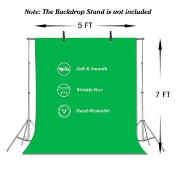 Show more Introducing the Emart Green Screen Backdrop, a perfect companion for photographers, videographers, and remote workers seeking to elevate their visual presentation! This 5x7ft backdrop is crafted from durable non-woven fabrics, offering a professional-grade alternative to traditional background cloths. The green color allows for seamless chroma keying, ensuring that your subjects stand out against a clean, vibrant background. The backdrop effectively eliminates reflections, thanks to its unique three-dimensional network structure.