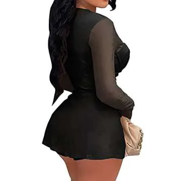 EMAZION Sexy Club Outfits for Women 2 Piece Mesh Dress Sexy Sheer Dresses Jumpsuit Mesh Shorts for Women Sexy (Black S)