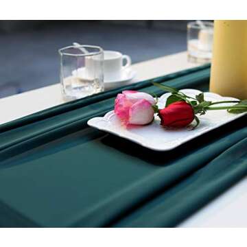 Unlike many other table runners on the market, the Emerald Green Chiffon Wedding Table Runner combines both style and function. While many alternatives may lack the ideal length and may be made from less durable materials, this runner offers quality with its elegant chiffon fabric. Competitors often do not include additional accessories like ribbons, which allow you to add a personalized touch to your décor. This versatility and attention to detail make it a superior choice for anyone seeking elegant event decor.