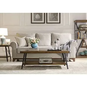 Emerald Home Furnishings Chandler Rustic Industrial Solid Wood and Steel Coffee Table with Open Shelf, Pine Brown,48"