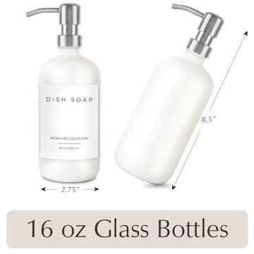 Emerson Glass Soap Dispenser Set with Pump and Labels, 16 Oz, 2 Pack - Kitchen and Bathroom Set
