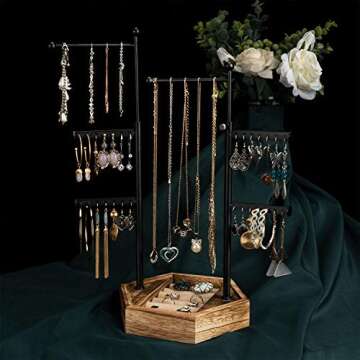 Emfogo Jewelry Organizer Stand - 6 Tier Jewelry Holder with Adjustable Height Necklace Holder Organizer Display & Storage for Earrings Ring Bracelet (Rustic Brown)