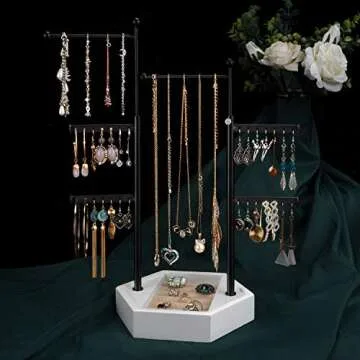 Emfogo Jewelry Organizer Stand - 6 Tier Jewelry Holder with Adjustable Height Necklace Holder Organizer Display & Storage for Earrings Ring Bracelet (White)