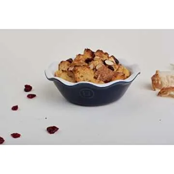 Show moreDiscover the artistry of French culinary craftsmanship with the Emile Henry HR Ceramic Mini Pie Dish, elegantly designed in a striking twilight hue. This exquisite dish has been expertly crafted in France since 1850, ensuring a blend of tradition and modern performance that creates an exceptional baking experience. Made from all-natural materials and high-fired Burgundy clay, this mini pie dish boasts superior heat retention and even heat diffusion, thus keeping your savory pies and sweet desserts delectably warm right on your table for longer periods. With the ability to withstand oven temperatures of up to 520°F, this versatile dish effortlessly transitions from the oven to the broiler, microwave, and even from the freezer, allowing you to create and serve your culinary masterpieces with ease and style.